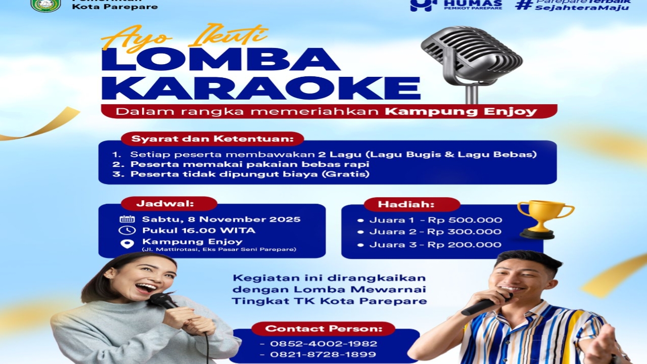 Selain lomba karaoke, kegiatan tersebut juga dirangkaikan dengan lomba mewarnai tingkat Taman Kanak-kanak (TK) se-Kota Parepare. Kehadiran dua kegiatan ini diharapkan menarik kunjungan masyarakat untuk beraktivitas di Kampung Enjoy, yang kini difokuskan sebagai ruang kreatif dan ekonomi baru bagi pelaku UMKM lokal.